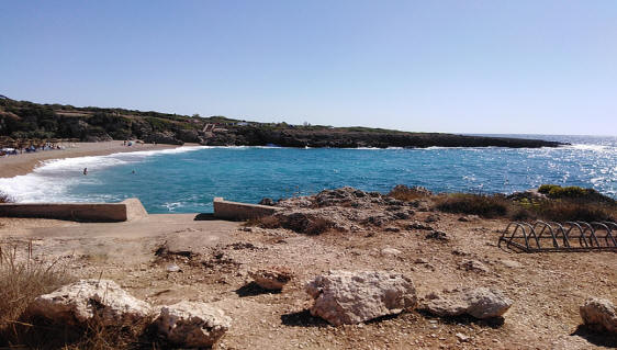 La plage de Méthoni accessible par une piste très rugueuse mais qui ne