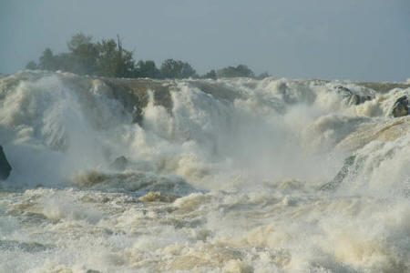 Depuis Don(e) Khong une pirogue va nous conduire aux premiers rapides : les chutes de Li Phi. Le point de vue s'atteint après une petite ballade en vélo. C'est dans ce secteur que les français ont établi une fois ferrée pour franchir ce passage non navigable. Dans l'après midi nous irons visiter les grandes chutes de Pha Pheng que l'on tient ici pour la perle du Mékong. elles s'étirent sur un 1 km de large et plus de 20m de haut.