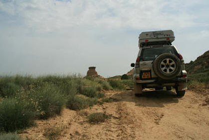 Nous y retrouvons l'ambiance typique des Bardenas sans les camping-cars en boucle autour du polygone de tir. Géologiquement, nous sommes comme dans les Bardenas sur les bordures de la dépression de l'Ebre : pas surprenant d'y retrouver des éléments de paysage très semblables, dont une belle cheminée de fée, le tozal de la Cobeta, qui ne le cède en rien à son homologue Castil de Tierra des Bardenas. Le circuit se veut dévolu aux VTT mais n'est pas interdit aux 4x4 : à nous de faire que cela continue !
