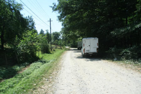 Encore un chemin creux, version roumaine.Les formalités -très simples- d'entrée en Roumanie effectuées, nous partons à la découverte de la région centrale de Transylvanie. Une région rurale, très boisée, avec de belles routes de montagne. Peu de voiture, beaucoup de pistes ont été goudronnées mais le résultat n'est pas très convaincant (le pays est très froid l'hiver, enneigé et et le réseau routier en souffre beaucoup). Peu de voitures sauf sur les grands axes, des rencontres, la découverte d'un pays à mille lieux de nos préoccupations existentielles.