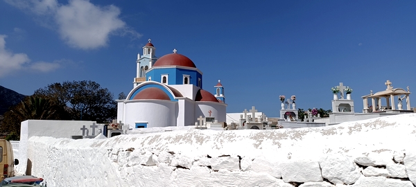 Panagia : le village ne compte pas moins de 6 églises toutes très proches les unes des autres. Au total l'ile compterait 102 édifices religieux de toutes dimensions.