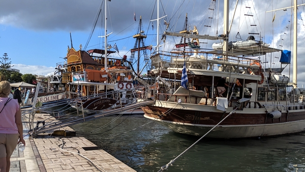 Pseudo bateaux pirates pour promener les touristes. Ces bateaux amènent sur des lieux de plongée et même jusqu'à Kalymnos ou Nysiros (l'ile au volcan) et Pserimos