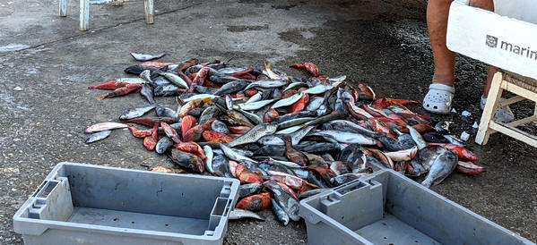 Sur le port de Kassos, un pêcheur vient d'arriver et propose ses prises aux amateurs et restaurateurs