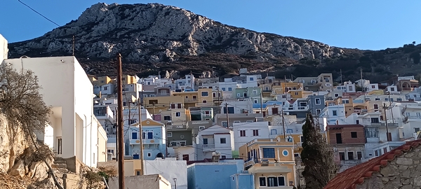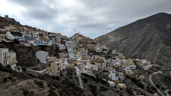 Le village d'Emporios accroché à la montagne