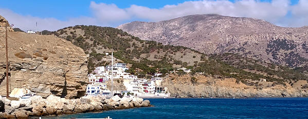 le petit port de pèche de Diafani. Le ferry accoste au bout à droite