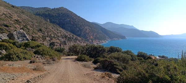 Piste vers les plages de Alyki et Fourni sur la cote nord-ouest.
