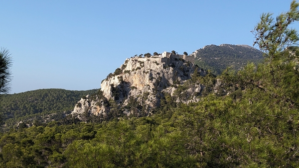 Ruines du chateau de Monolithos (15eme siecle) construit sur une falaise et dominant la mer.