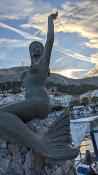 le long du port de Vathy, il y a beaucoup d'échoppes touristiques (souvenirs et restauration). En fait , c'est une des destinations préférentielles des bateaux de promenade de Kos.
