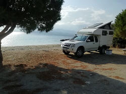 bivouac à Kato Vasilki (près d'Antirion) en face de Patras. Il y a un
