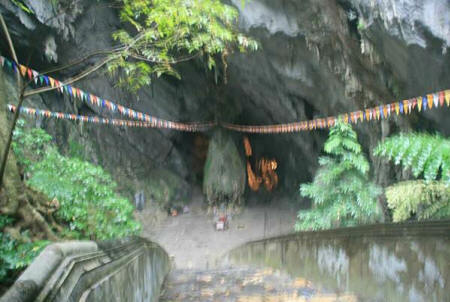 A soixante kilomètres au nord d'Hanoï, la Pagode des Parfums est un lieu de dévotion important. On s'y rend en foule nombreuse au mois d'Avril lors du pèlerinage annuel, ce qui explique le millier de barques alignées sur les berges de la rivière car l'ensemble religieux ne s'atteint qu'après un petit voyage sur une paisible rivière. C'est là un des charmes de cette visite. ◘